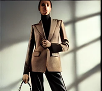 黑色条纹平驳领羊毛可机洗西服